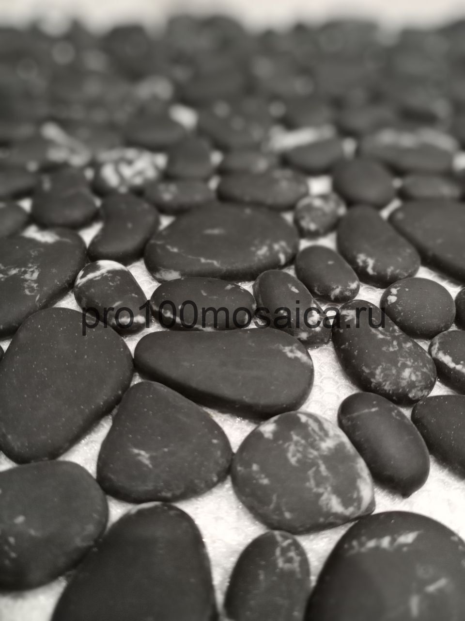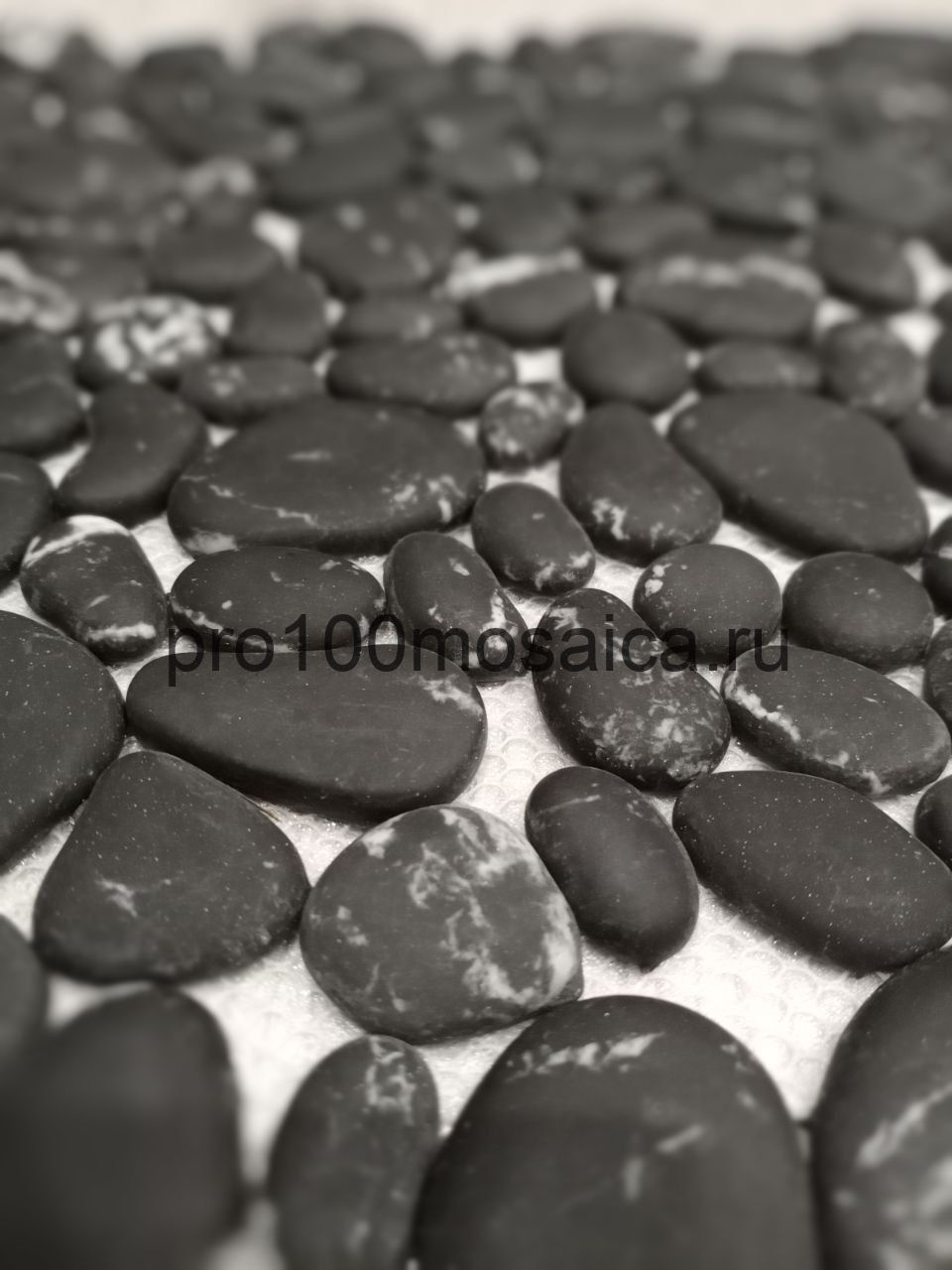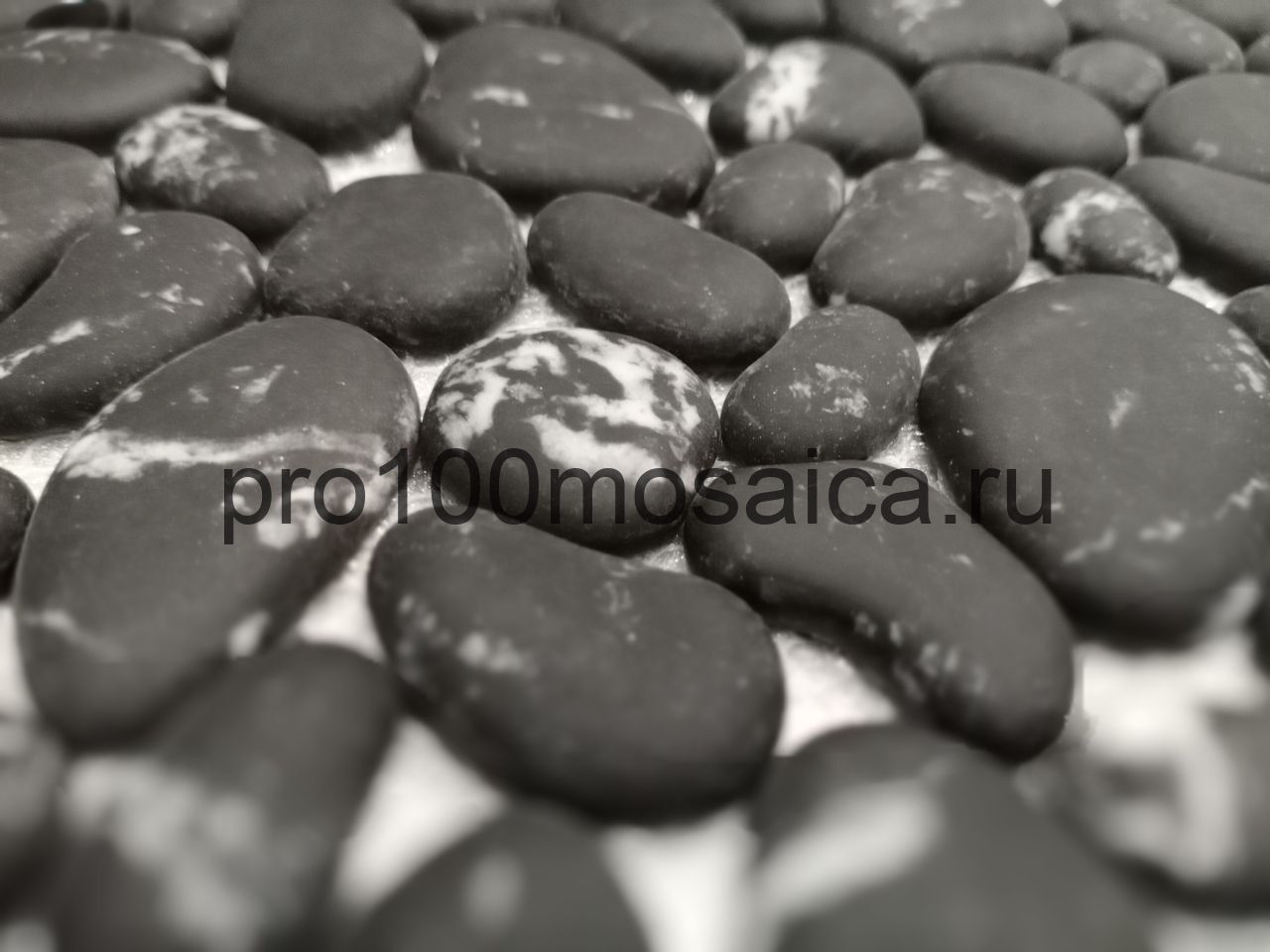 BLACK ROCK. Плитка мозаика черная камешки стекло Glass 305*305*6 (ORRO Mosaic)