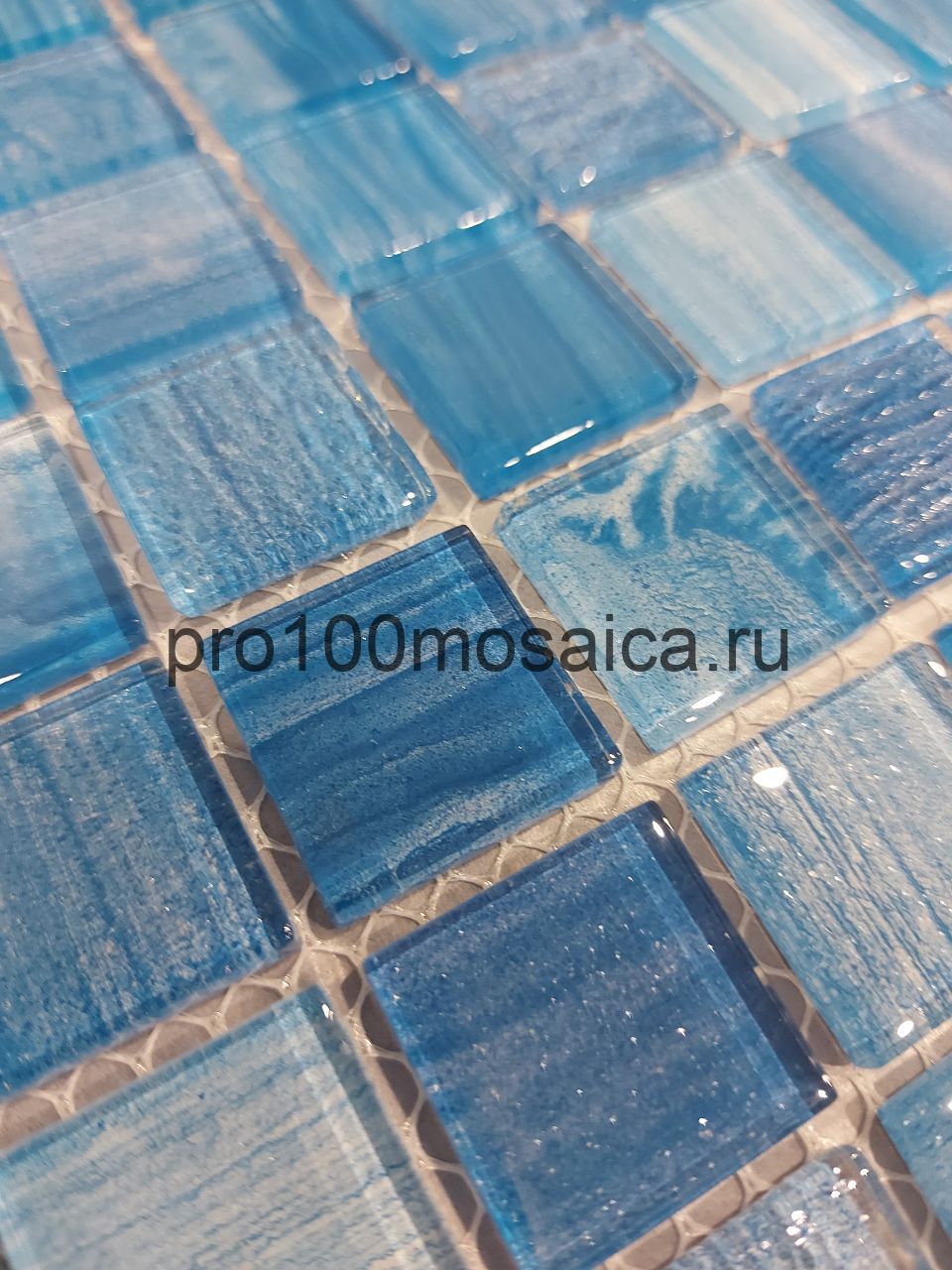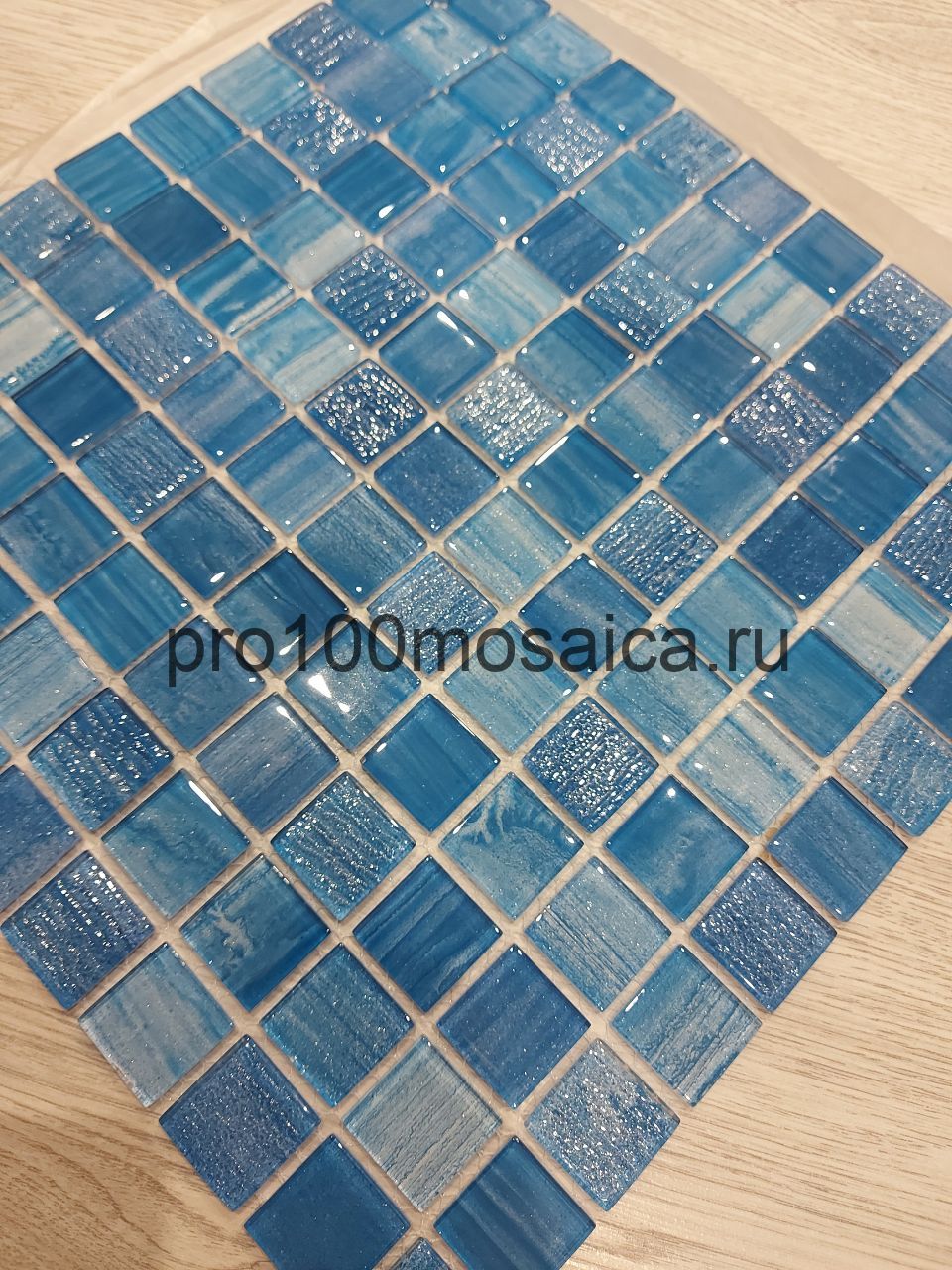 BLUE BAY Плитка мозаика для бассейнов синяя голубая стекло CRISTAL, 300*300*4 (ORRO)