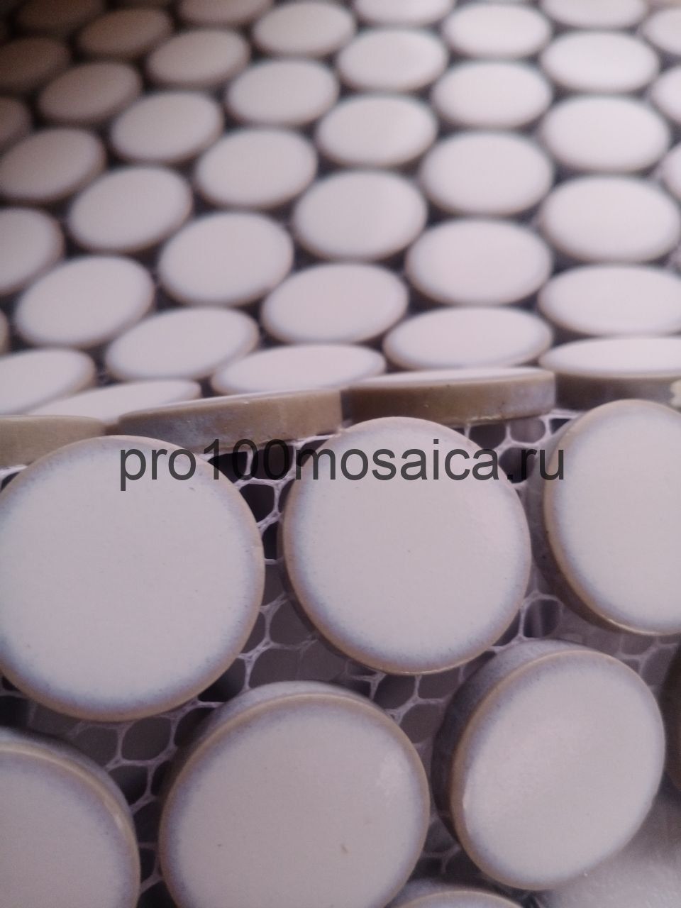 KO28-1R. Плитка Мозаика из керамогранита, круглая, белая, 312х330х6 мм, чип d28